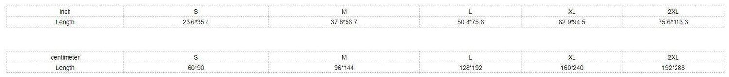 | Inches | 23.6×35.4 | 37.8×56.7 | 50.4×75.6 | 62.9×94.5 | 75.6×113.3 |
